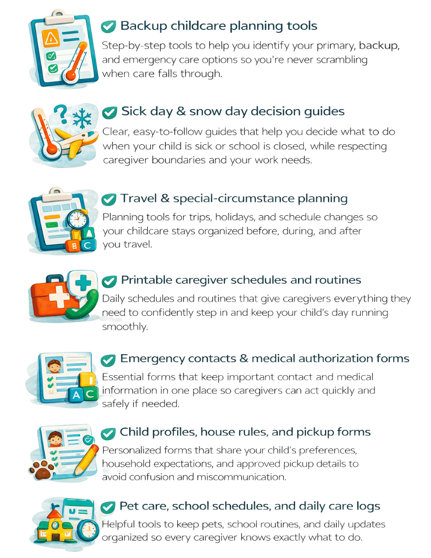 Childcare disruptions happen — sick days, snow days, delayed flights, or caregivers calling out. The stress usually isn’t the disruption itself — it’s not having a plan when it happens.